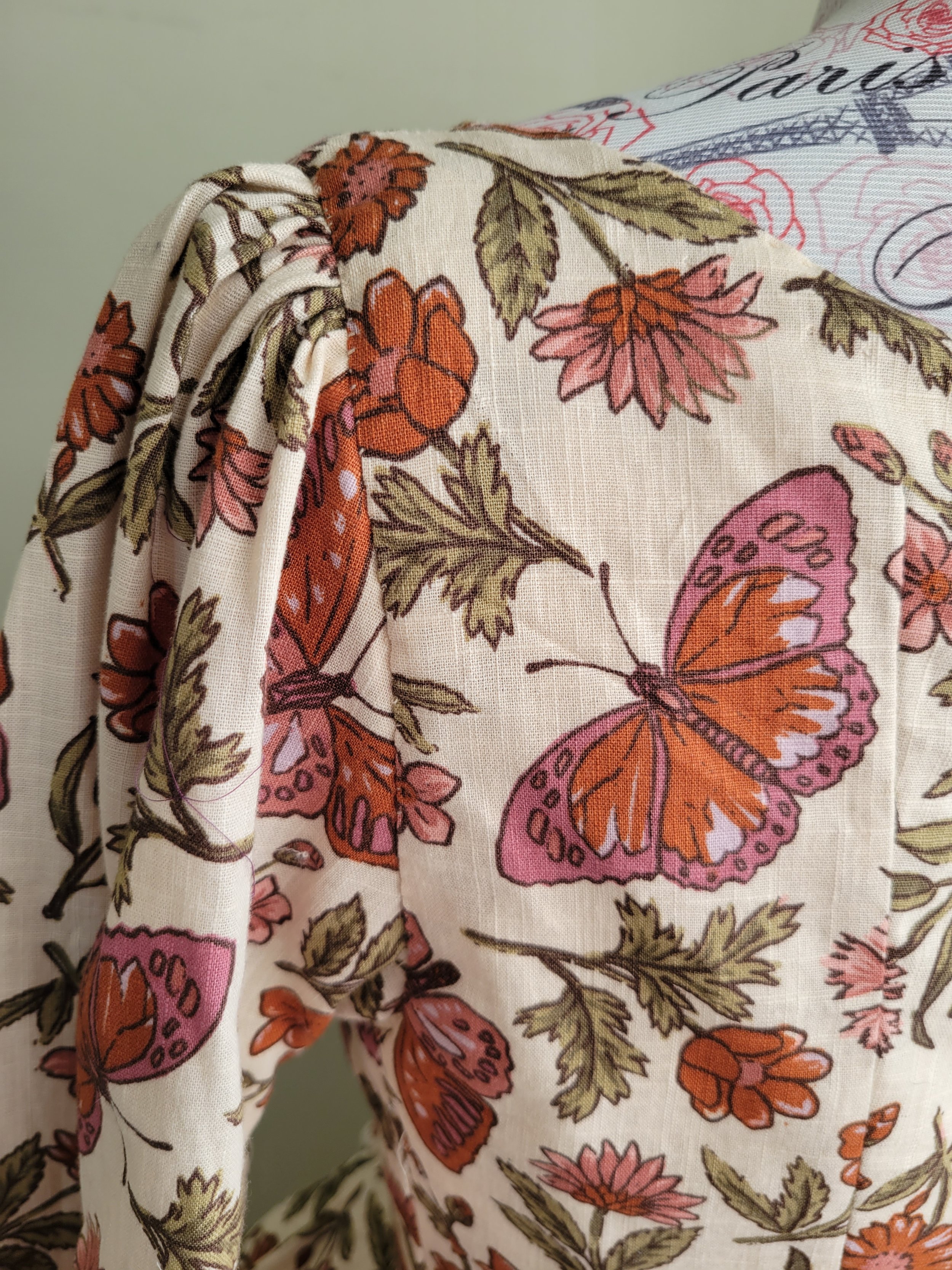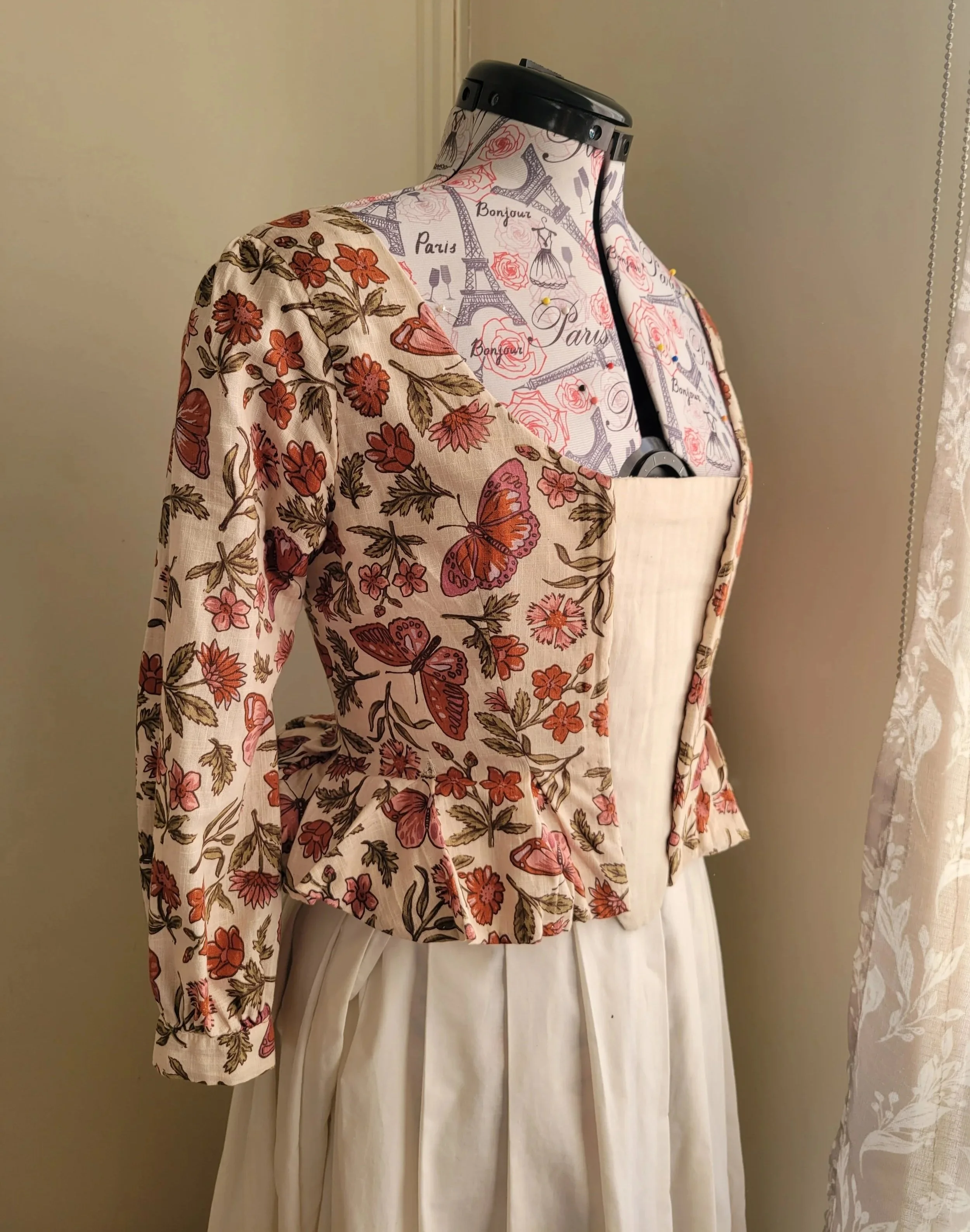 This bodice started as a top I bought from Princess Highway, I loved the fabric but never wore it. I had the idea to change it into an 18th century bodice after watching the Outlander series. Brightly patterned linen worked perfectly as a Brianna-inspired fabric, paired with a pumpkin-coloured linen skirt.