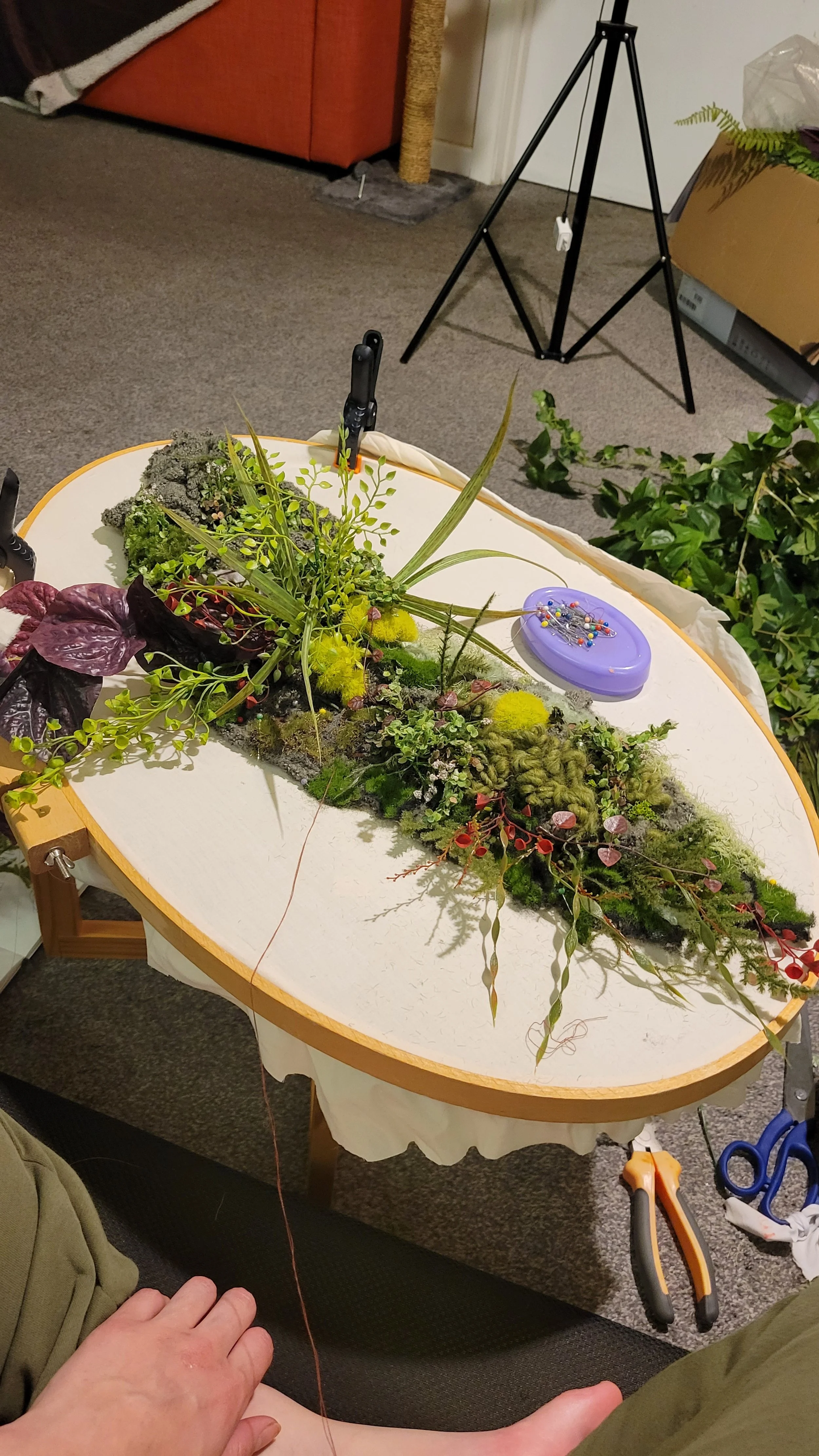 I used wire and fabric and thread to create the Luna Moth, and the Silver Falls greenery.