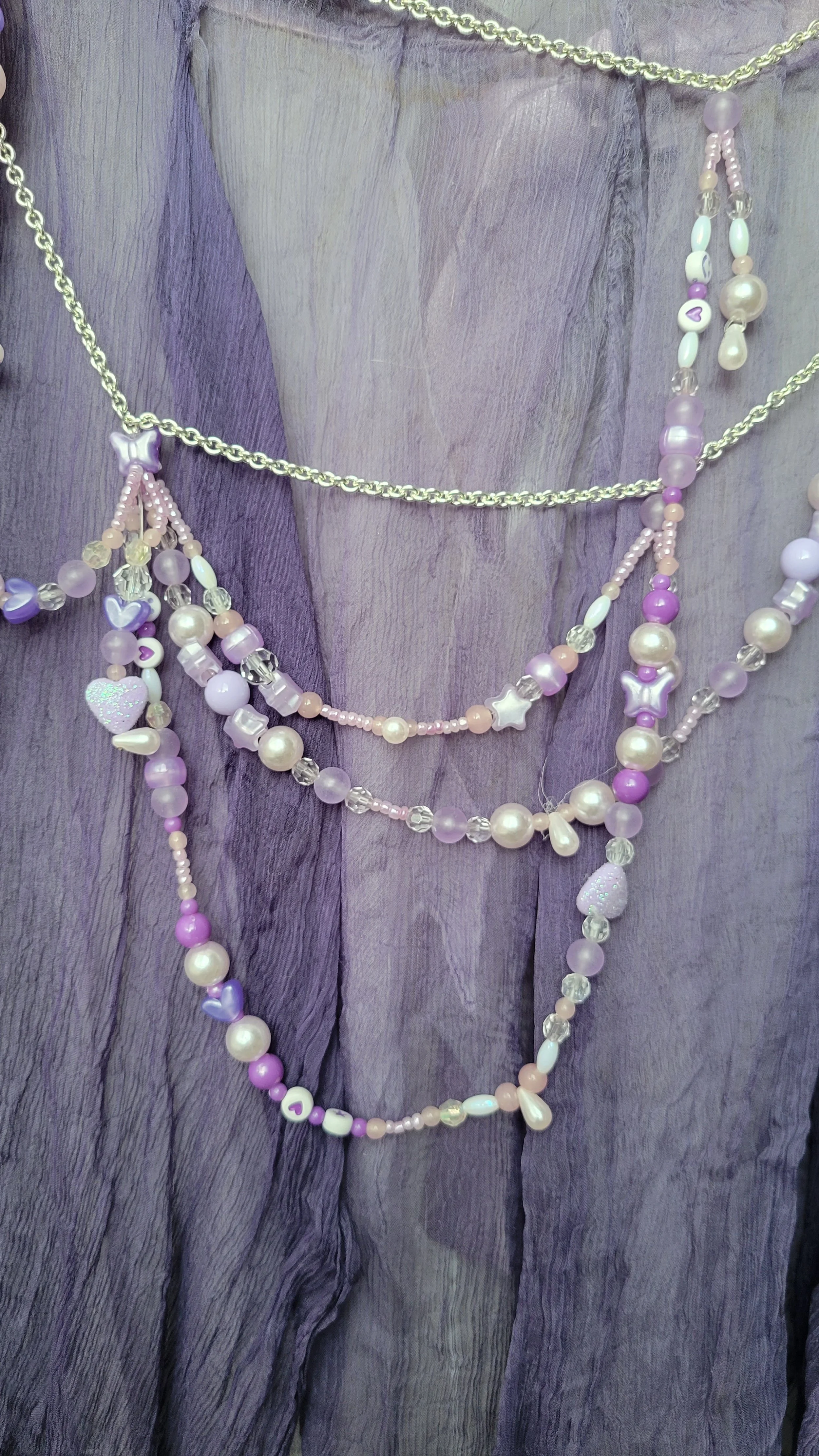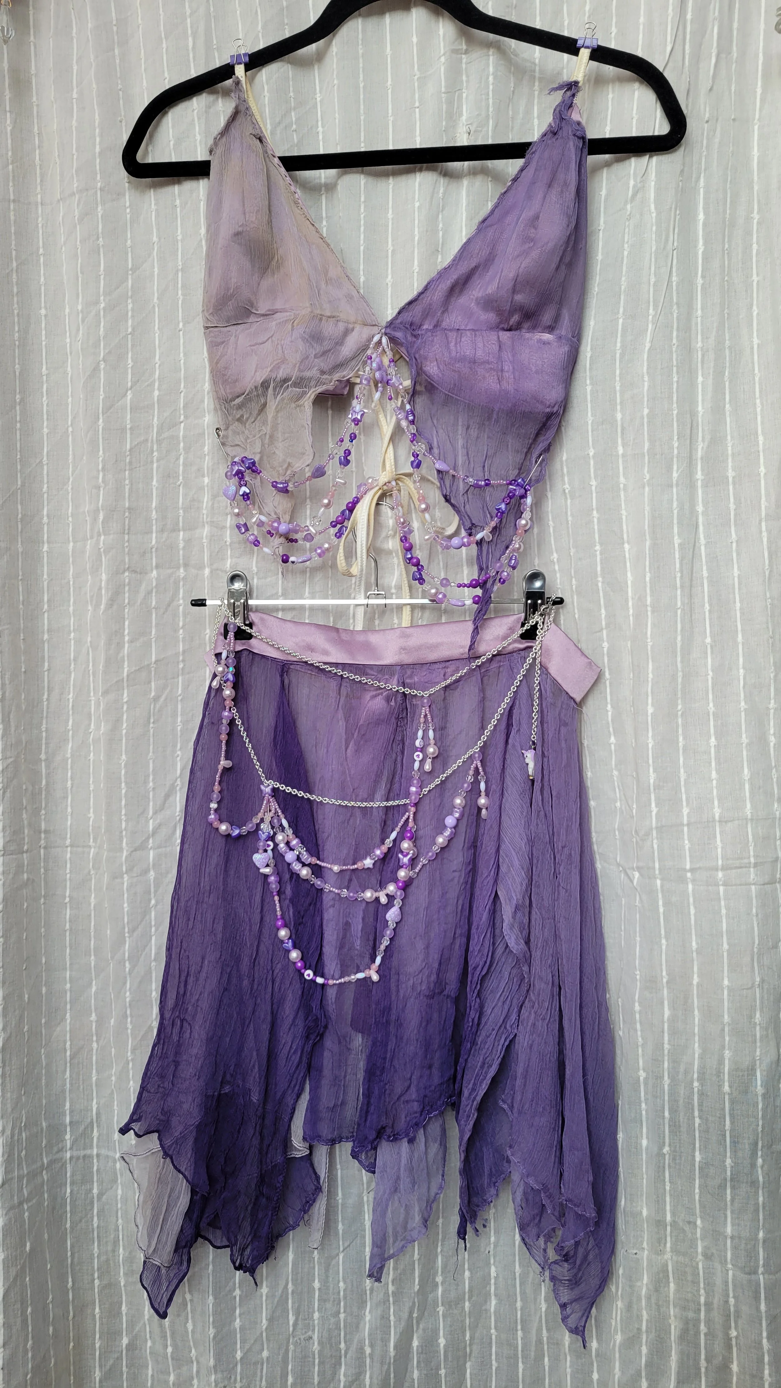 Festival Outfit turned Concert Outfit. I beaded a chain belt and matching jewellery to turn this Mardi Gras outfit, I made from a thrifted scarf, into a look ready for a concert, inspired by the artist I went to see, Peach PRC during her fairycore tour.
